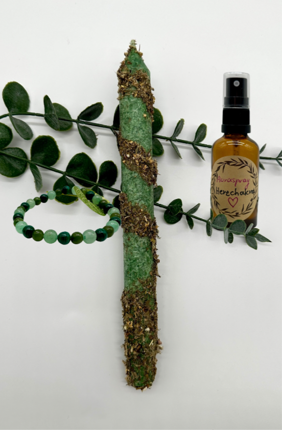 Löse blockierte Energien und sei wieder bereit Liebe zu geben sowie zu empfangen mit dem Herzchakra Set bestehend aus: Ritualkerze, Crystalarmband und Auraspray. Durch das Lösen von Blockaden am Herzchakra kannst du mehr Verbundenheit mit allem sowie innerer Ruhe erfahren. Bleibe fokussiert und ausgeglichen mit diesem Set.